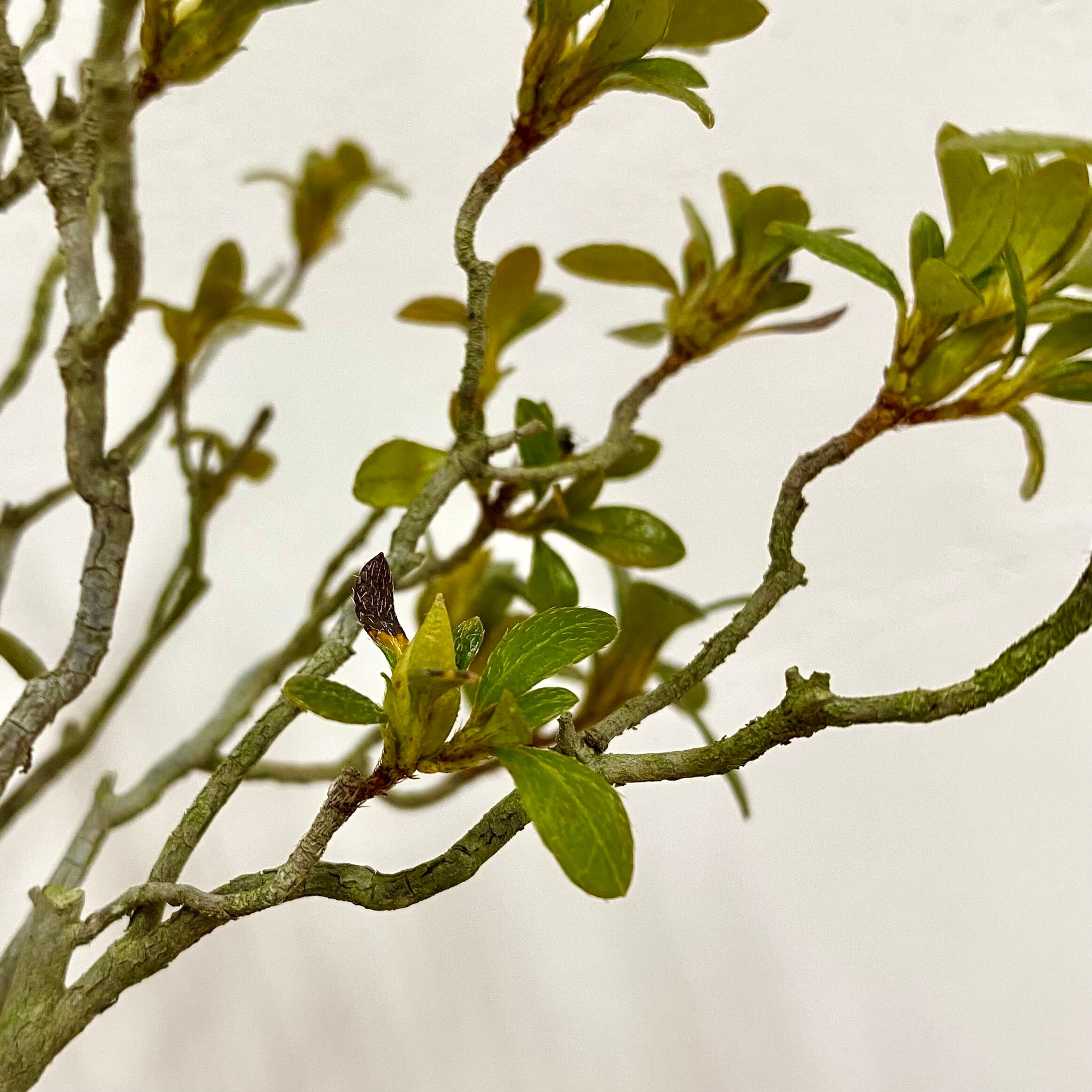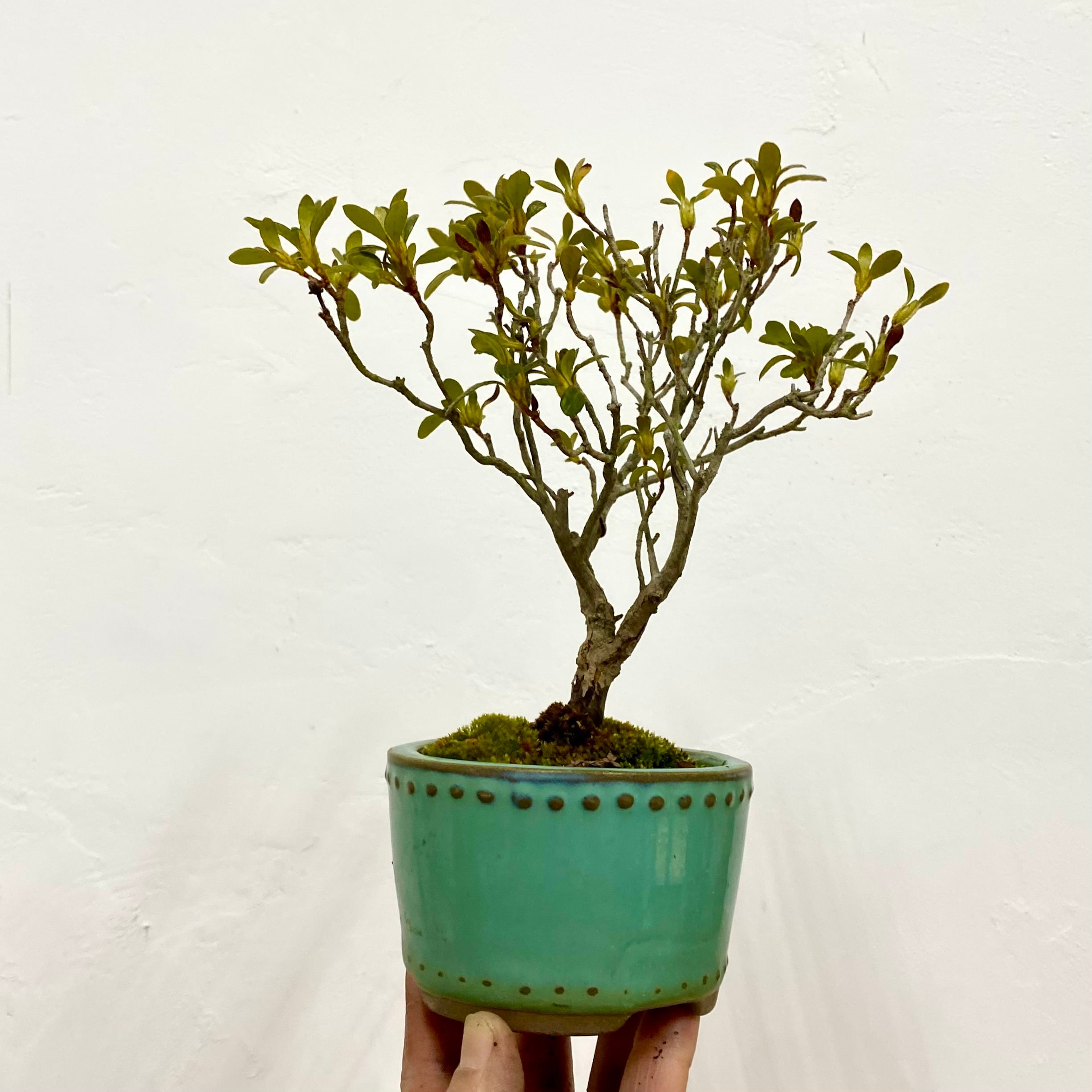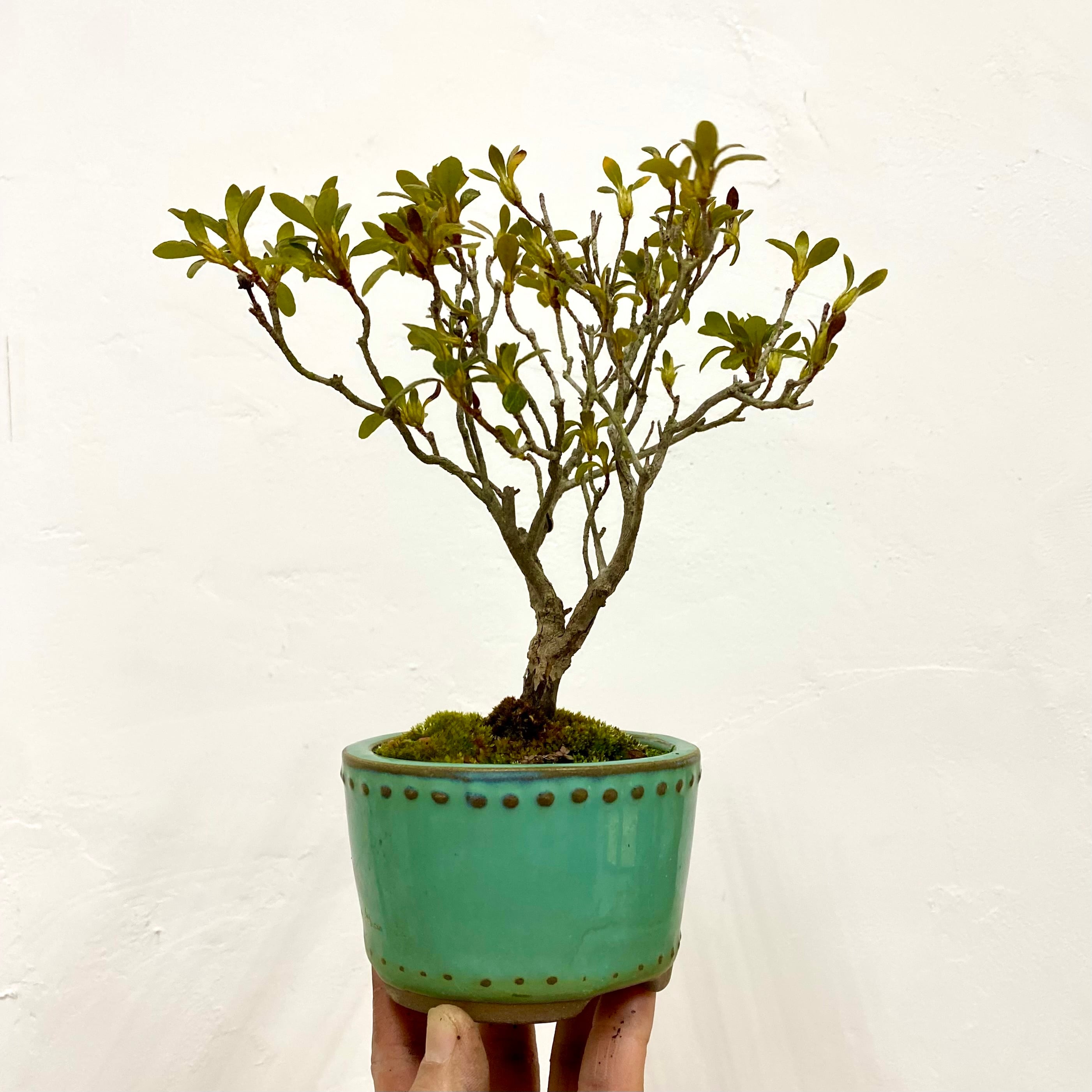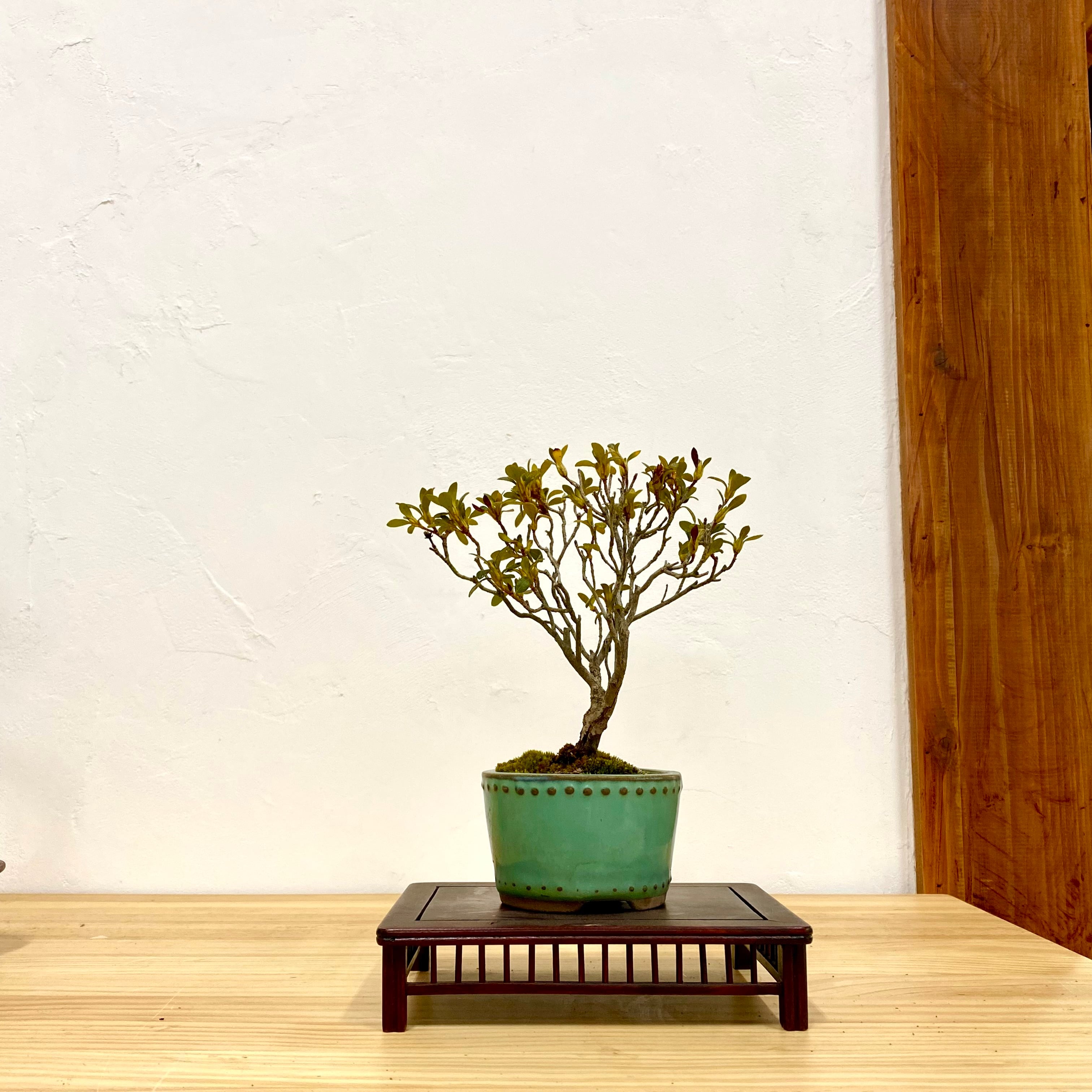 膨らみかけの蕾をつけた、ツツジの盆栽です。これから花開く瞬間を待つ、春のはじまりの一鉢。