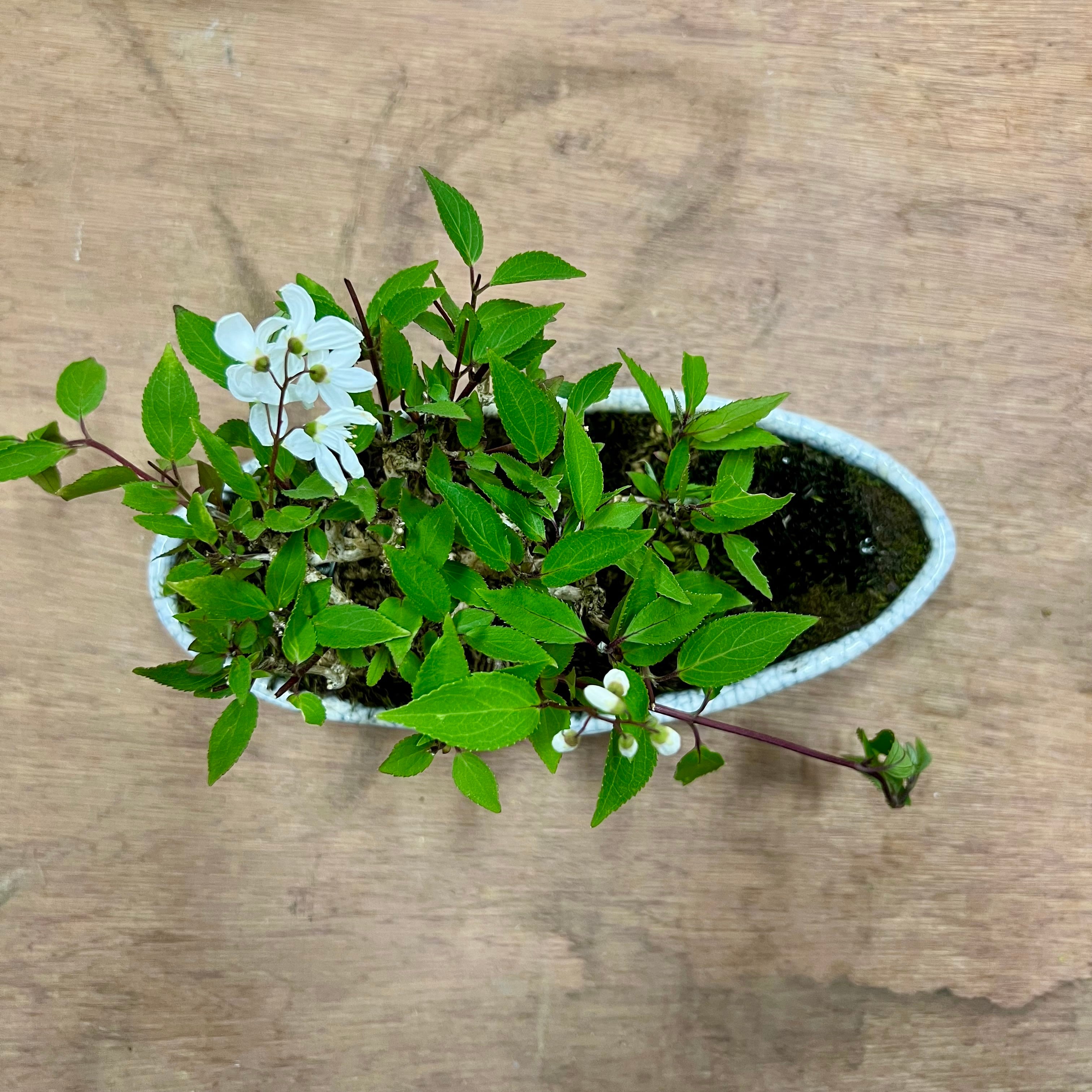 初夏に可憐な花を咲かせる、ウツギの盆栽です。